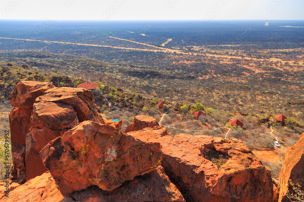 Red roofs of the Waterberg Plateau Lodge in Namibia.