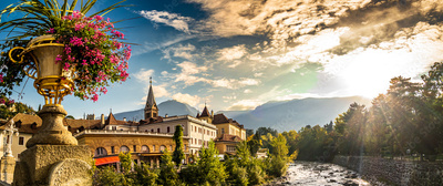 historic buildings at the old town of Meran in italy