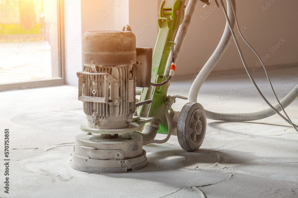 Grinding concrete industrial floors, lots of dust when grinding concrete with large professional grinders.