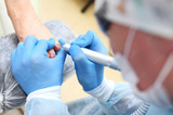 Hardware medical pedicure with a drill for nail files. Onychomycosis, treatment of nail fungus