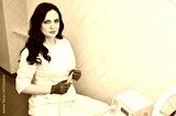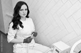 podiatrist woman holds in her hands a device for pedicure and treatment of onychomycosis - a fungal nail disease