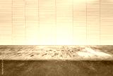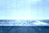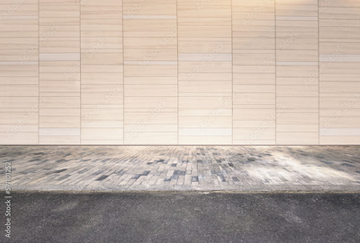 An architectural space composed of asphalt pavement, brick pavement and tile walls.