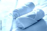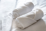 Soft pillows and white towel on clean white bed. Pillows bed with bedding sheets in bedroom. Bed sheets and pillows messed. Hotel, resort or home can relax on bed for deep sleep.