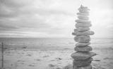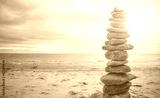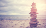 Stone pyramid on a beach, zen, harmony and balance concept, color toning applied.