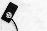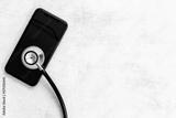 Electronics repair servise concept - mobile phone with stethoscope