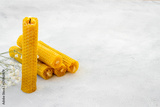 Bunch of honey aroma candles. Handmade eco product for home decor