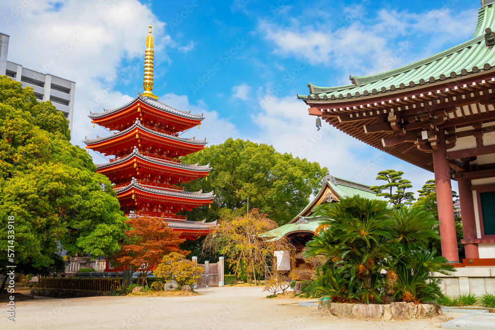 Fukuoka, Japan - Nov 20 2022: Tochoji Temple located in Hakata district. First built by Kobo Daishi by the sea, moved to current place by Kuroda Tadayuki, designated a historical site by Fukuoka City