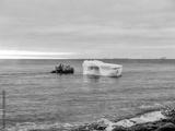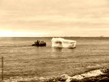 Tourism in Antarctica, as cruise ship passengers ride in an inflatable boat past an iceberg floating near the beach of Paulet Island.