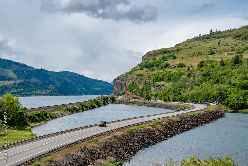 Grassy Hillside Highway Train Tracks at Coyote Wall Overlooking the Columbia River Gorge in Oregon & Washington