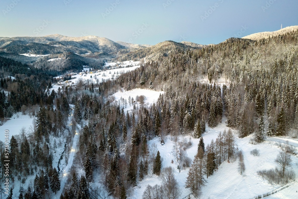 Zimowy, śnieżny poranek w Gorcach w miejscowości Szczawa