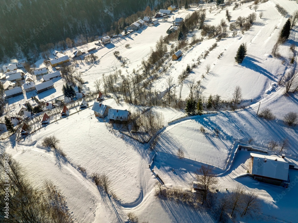 Zimowy, śnieżny poranek w Gorcach w miejscowości Szczawa