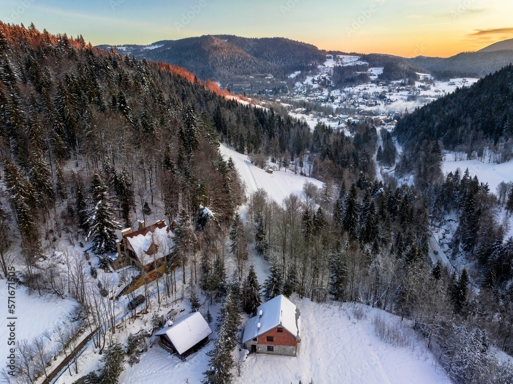 Zimowy, śnieżny poranek w Gorcach w miejscowości Szczawa