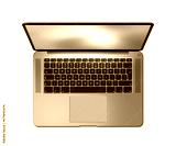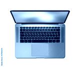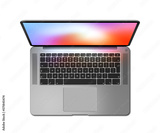 Open laptop top view with colorful screen, isolated on transparent background. Dark silver. 3D render