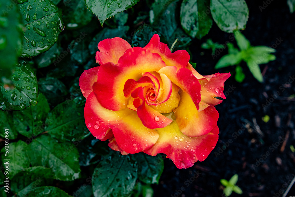 Beautiful Colorful Orange Rose in Bloom at International Rose Test Garden in Portland, OR