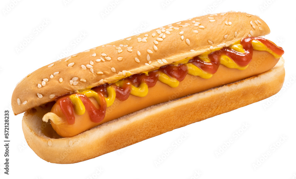 Hot Dog with mustard sauce isolated on white, Fresh Hot Dog Isolated on White background, With work path.