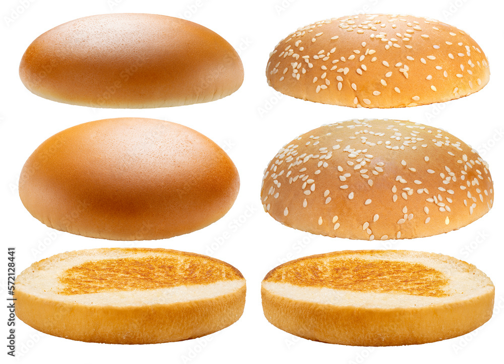 Freshly baked Hamburger bread isolated on white background, Hamburger bread on white PNG file.