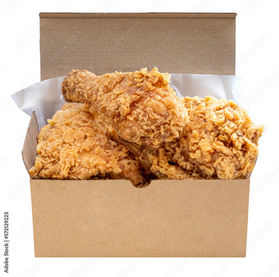Fried chicken in paper plate isolated on white background, Fried chicken on paper plate for delivery PNG File.