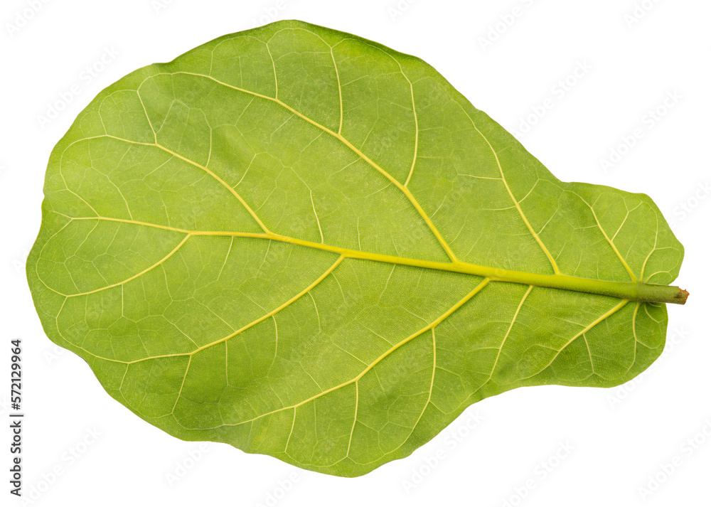 Green fiddle fig leaf isolated on white, Fiddle fig leaf Isolated on White background PNG file.