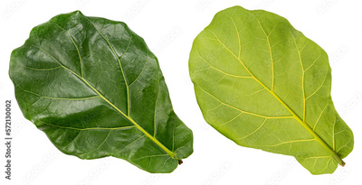 Green fiddle fig leaf isolated on white, Fiddle fig leaf Isolated on White background PNG file.