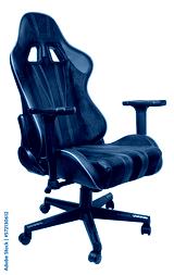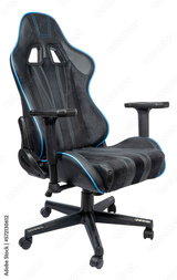 Black and blue leather gaming chair isolated on white background, Office chair with black and blue velvet fabric on white background PNG file.