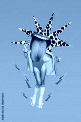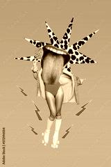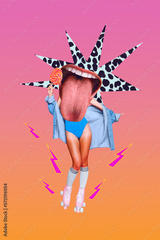Photo artwork collage of young headless absurd lady wear swimsuit summertime tongue lick stick lollipop visual effect isolated on gradient background