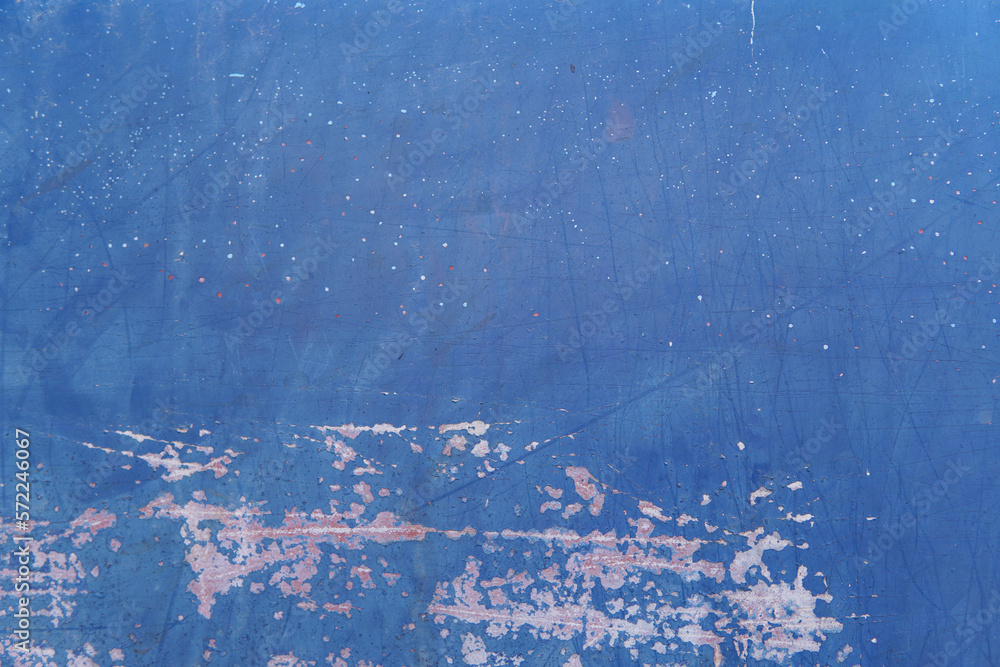 Old blue iron texture, peeling rusty texture, blue background with copy space