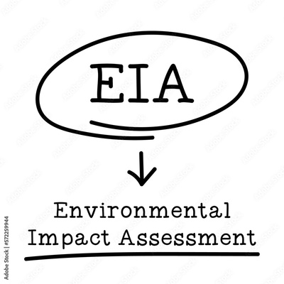 Letter of abbreviation EIA in circle and word Environmental Impact Assessment on white background