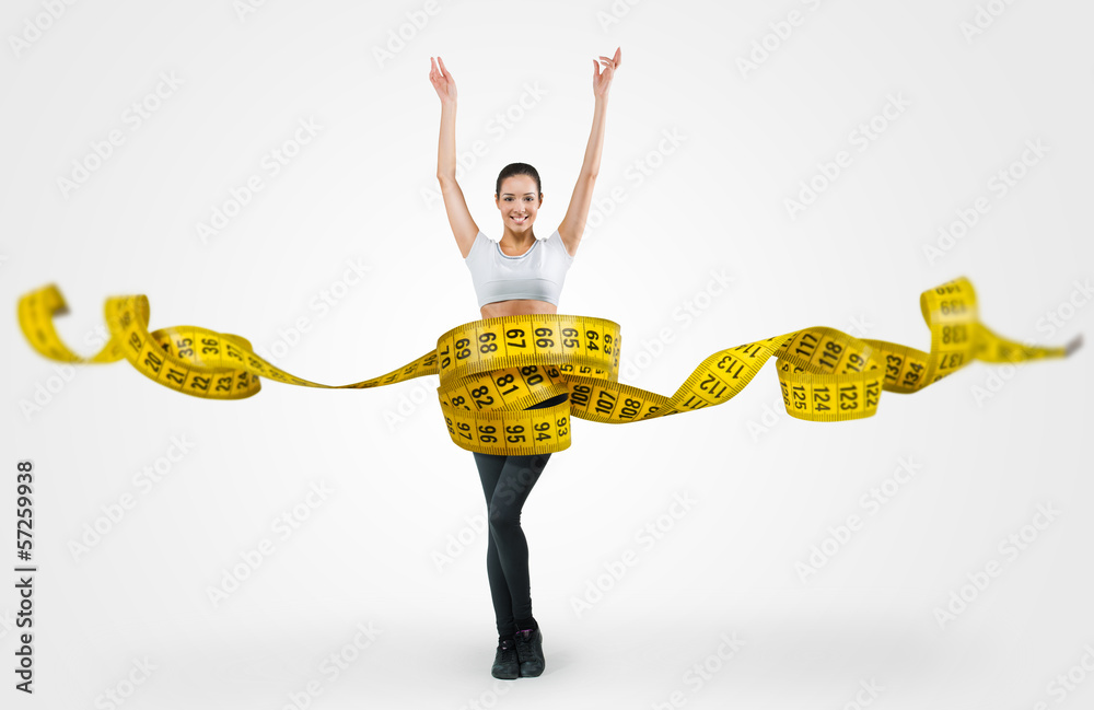 Fit young woman with a large measuring tape