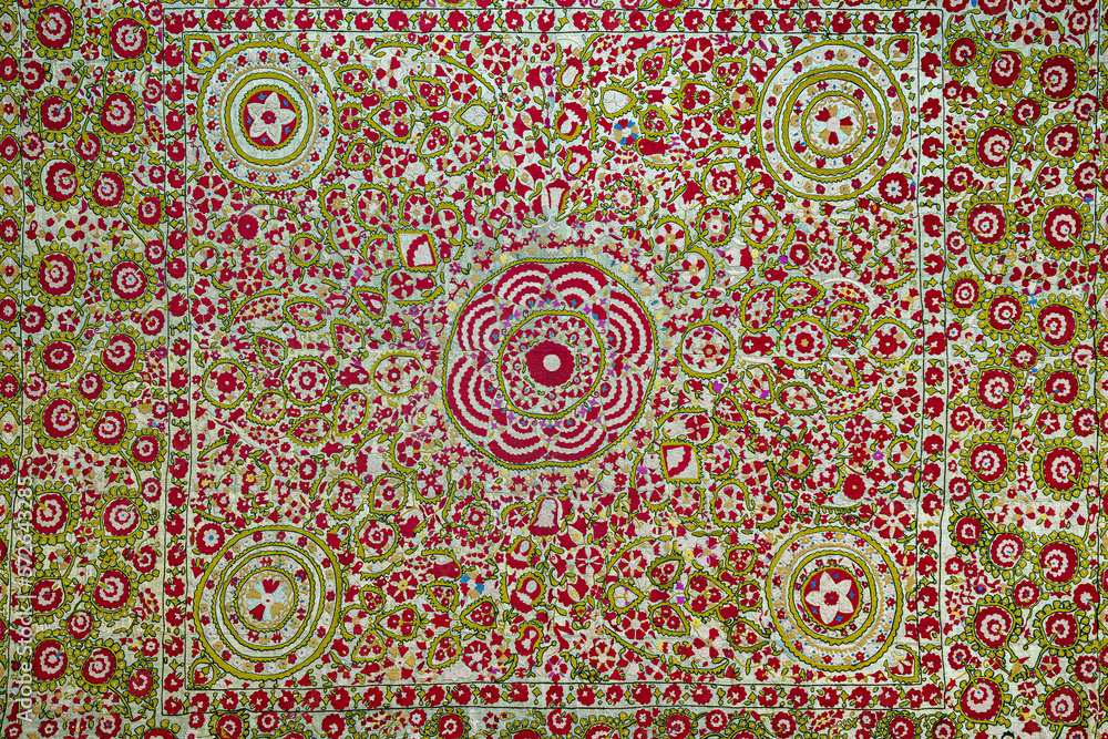 Colorful vintage rug made by hand. Oriental needlework of the 19th century. Abstract background.