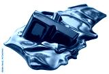 Melting piece of dark chocolate bar isolated, selective DOF