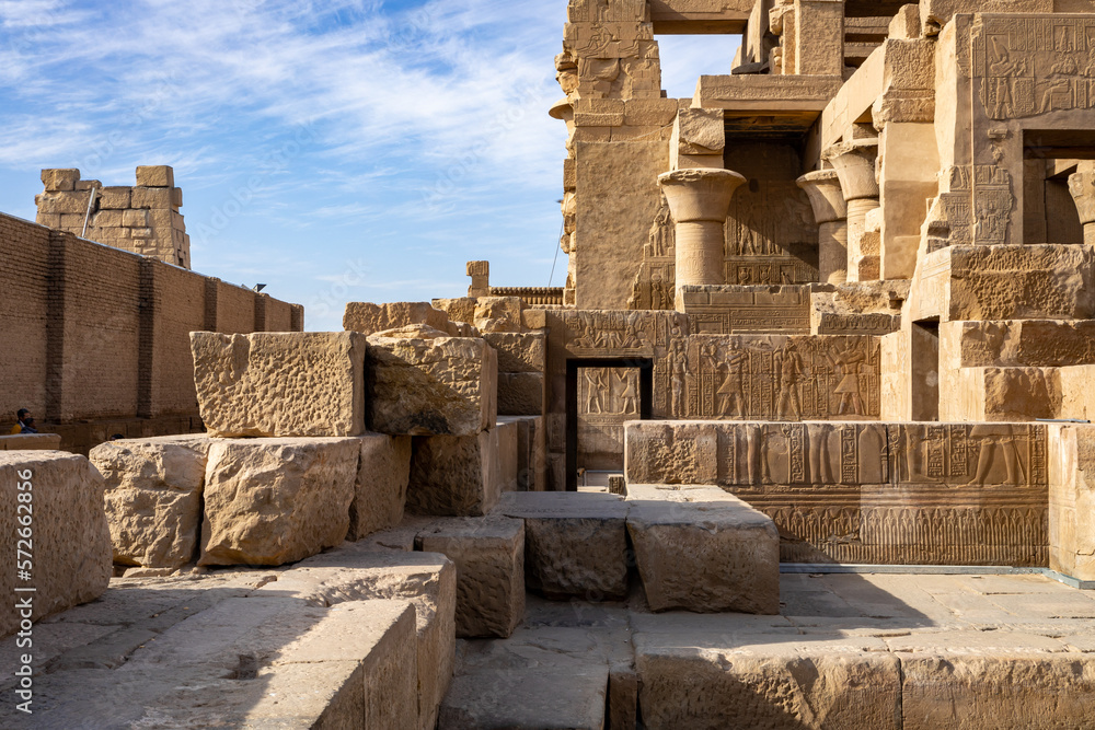Temple of Kom Ombo Decorated with Hieroglyphics. Kom Ombo in Aswan Governorate, Upper Egypt. Africa.