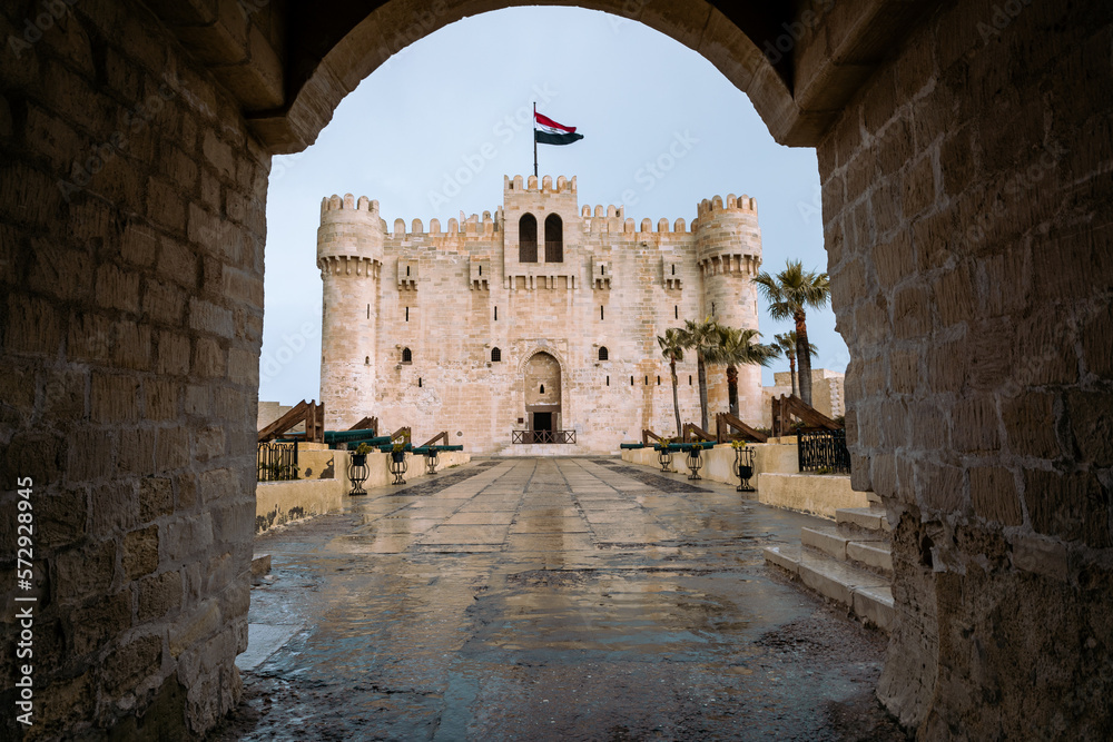 Citadel of Qaitbay, a 15th century defensive fortress located on the Mediterranean sea coast. Alexandria, Egypt. Africa.