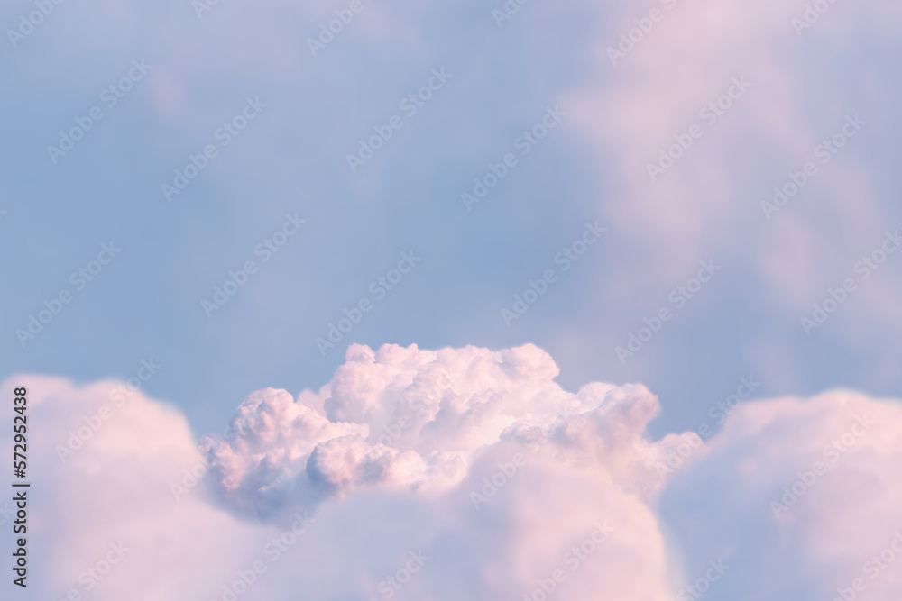 Surreal cloud podium outdoor on blue sky pink pastel clouds with empty space.Beauty cosmetic product placement pedestal present promotion minimal display,summer paradise dreamy concept.