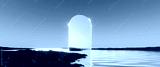3d render, abstract minimalist panoramic background. Fantastic scenery wallpaper. Rounded mirror in the water