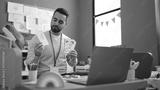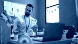 Young hispanic man working as teacher teaching online words lesson at kindergarten