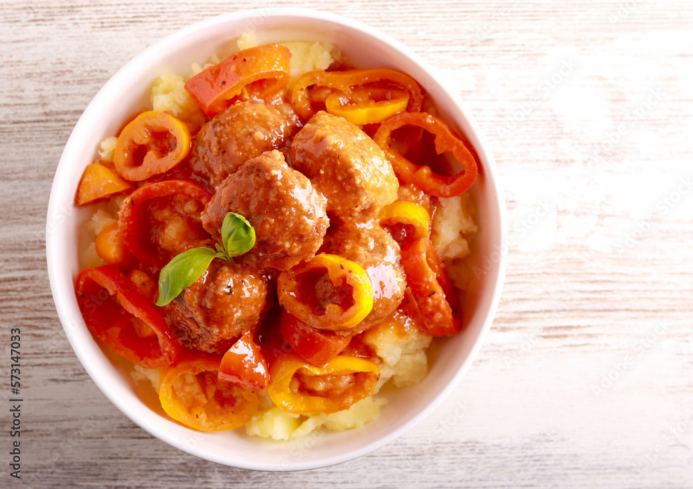 Meatballs in sauce with peppers