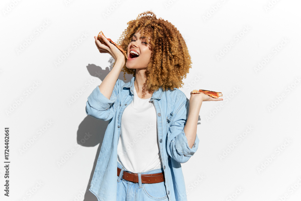 Young woman celebrating life standing in winter nature