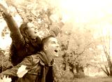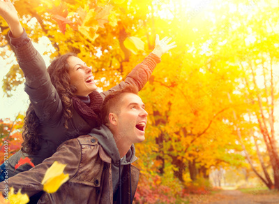 Happy Couple in Autumn Park. Fall. Family Having Fun Outdoors