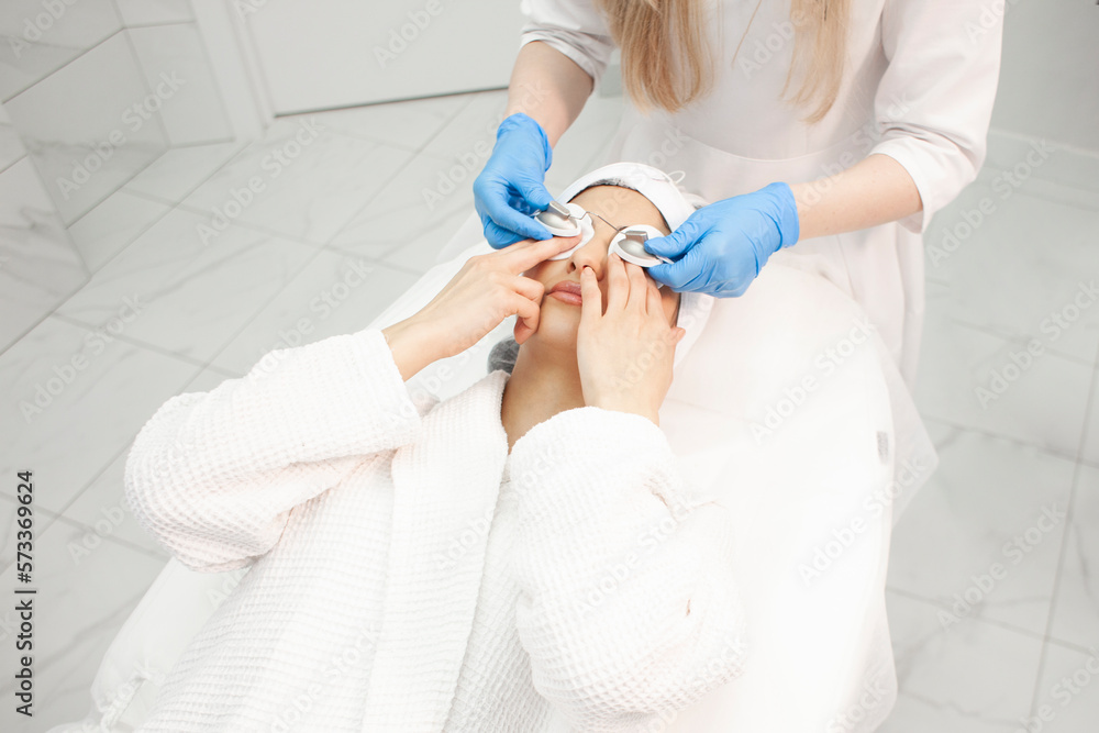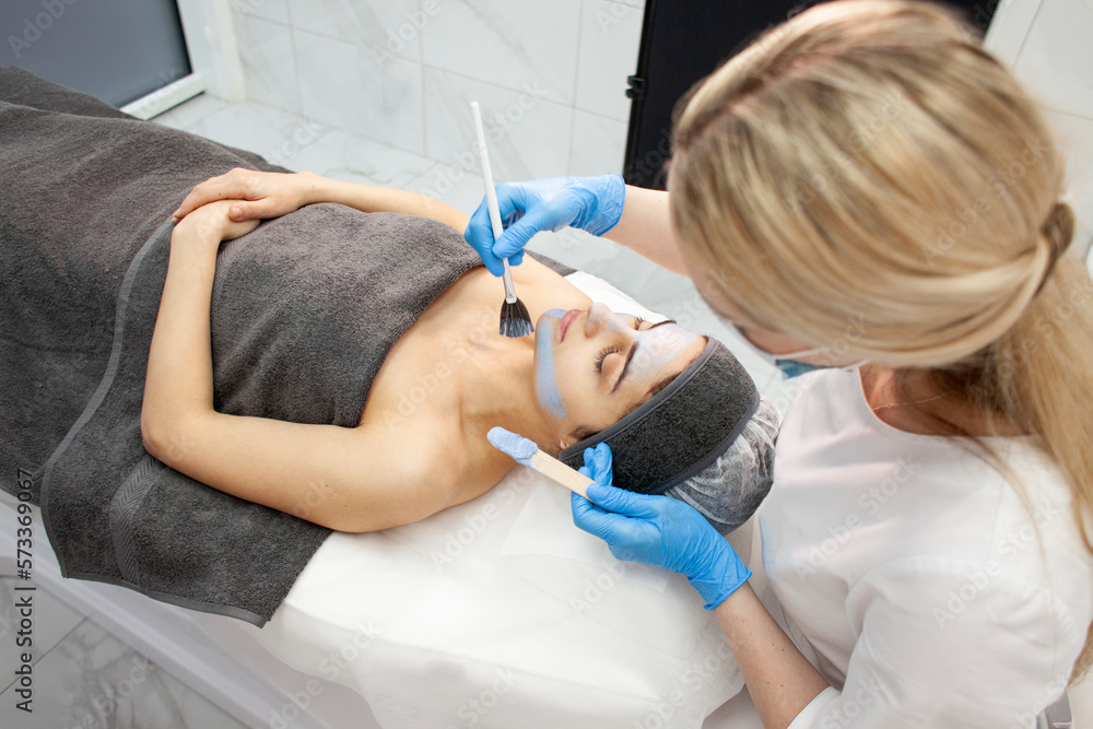 doctor cosmetologist in cosmetology clinic, girl in doctor's uniform stands near the couch in the cosmetology office