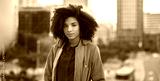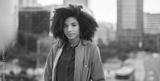 Black woman in city, travel and freedom with portrait, content with mockup space and young person outdoor. Fashion, beauty and calm with peace and relax in urban cityscape, gen z youth in New York