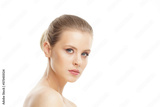 Close-up portrait of beautiful, fresh, healthy and sensual girl over white background