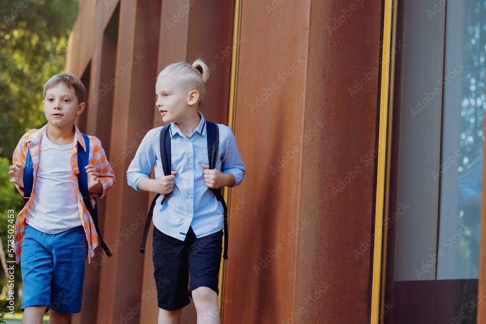 children go to school. Begining of academic year