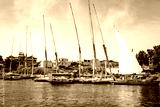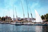 Felucca Sailing on the Nile River in Aswan. Popular Tourist Sailboat in the Nile. Aswan, Egypt. Africa.