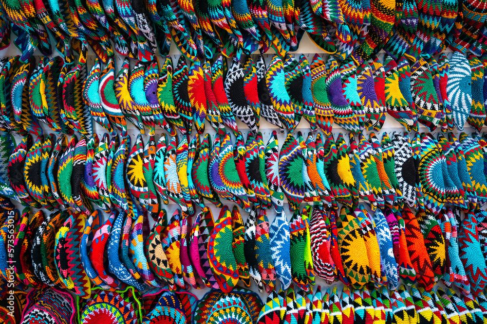 Colorful Handmade Clothes. Variety of Traditional Egyptian Souvenir. Oriental Bazaar at Nubian Village. Aswan. Egypt. Africa.
