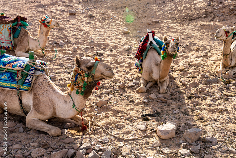 Camels for Tourist in Aswan Desert Landscape. Aswan, Egypt.