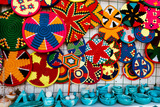 Colorful Handmade Fabrics. Variety of Traditional Egyptian Souvenir. Oriental Bazaar at Nubian Village. Aswan. Egypt. Africa.