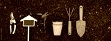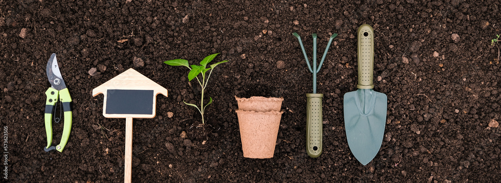 Growing seedlings of vegetables for planting greenhouse, tools gardener and gardener