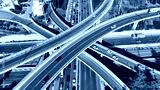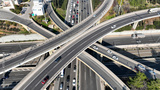 Aerial drone photo of modern Attiki Odos toll road interchange with National road in Attica, Athens, Greece