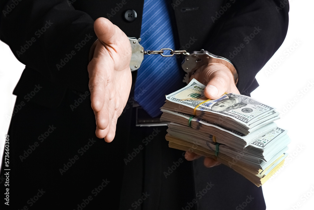 A money in the hands of a businessman crime in a crisis raising business concept bank worker