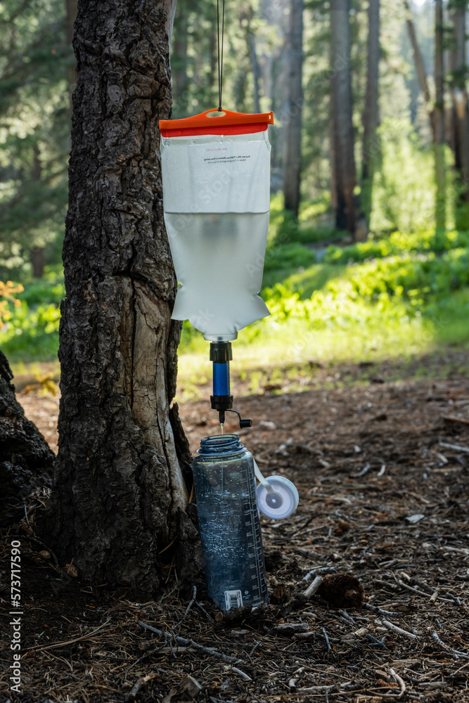 Gravity Water Filter Hangs From Tree